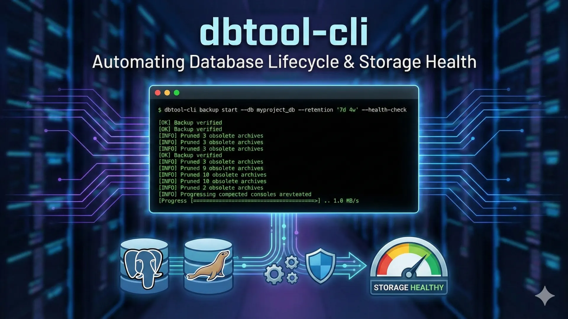 A cross-platform CLI tool built with Go and Cobra to automate PostgreSQL and MariaDB management, featuring intelligent backup retention and automated provisioning.