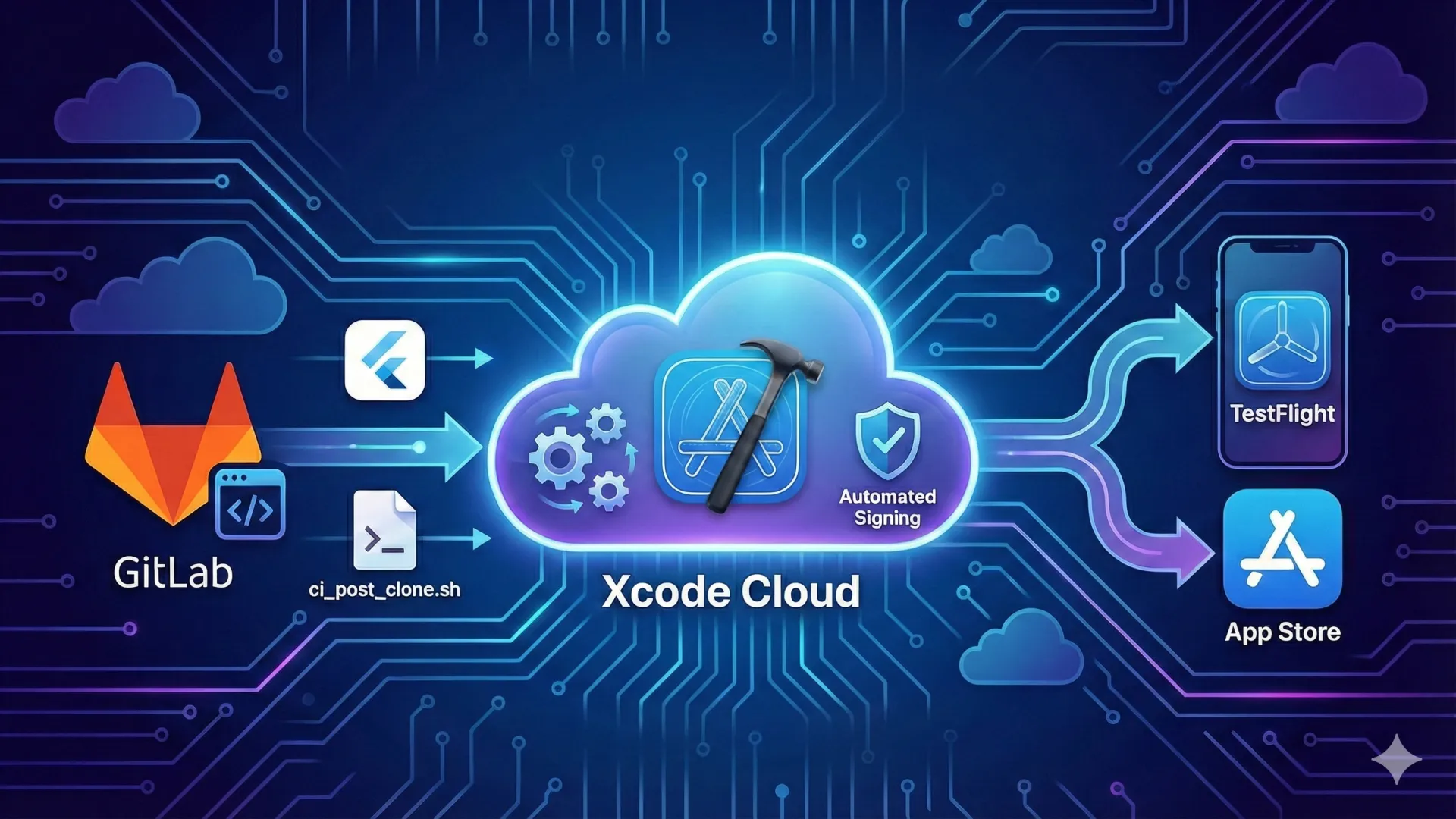 How I automated Flutter iOS builds using Xcode Cloud integrated with a self-hosted GitLab, eliminating on-premise hardware and solving certificate management headaches.